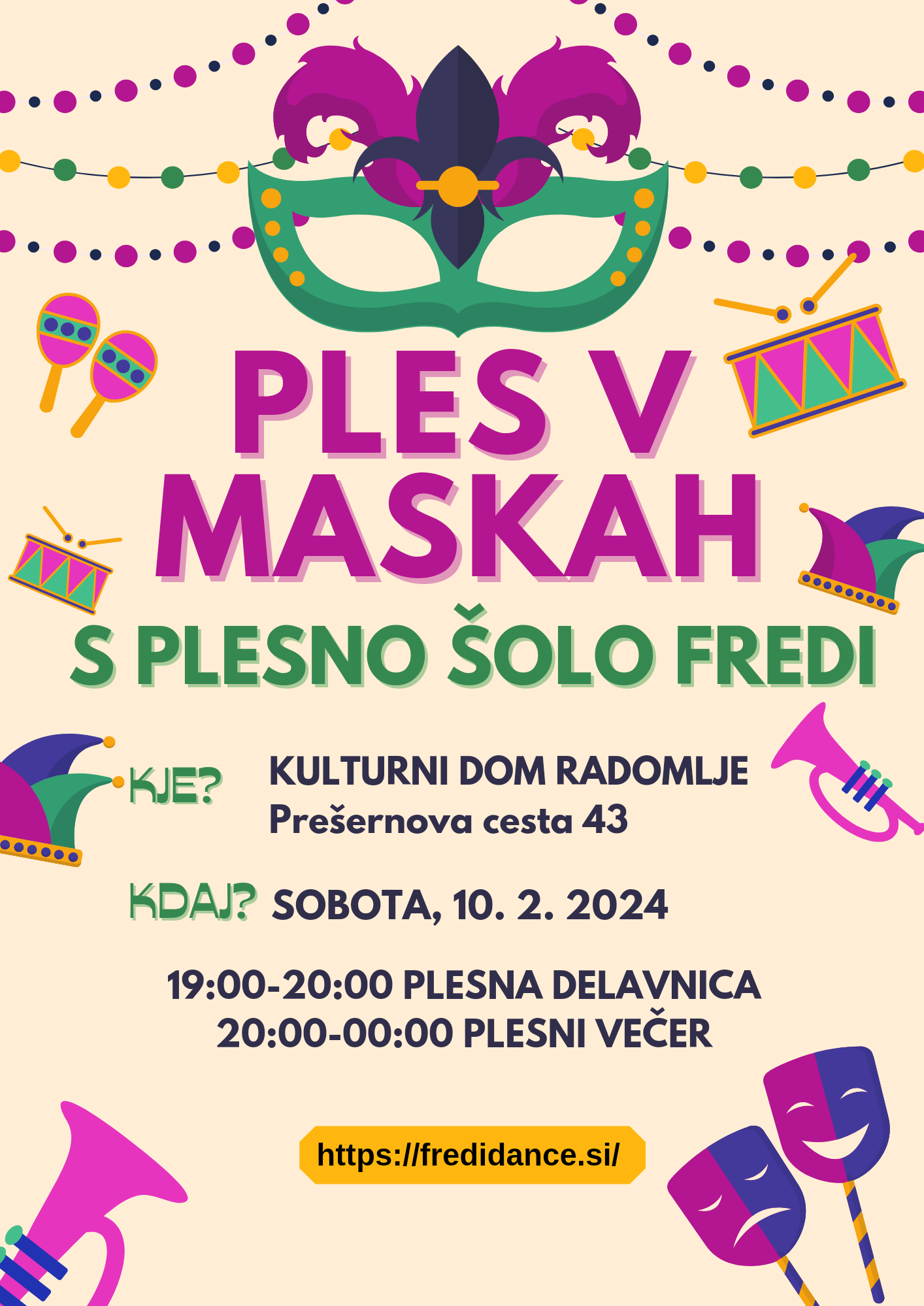 Vabimo Vas, da se nam pridružite na Pustnem plesu plesne šole Fredi, ki bo v soboto 10.2.2024 s pričetkom ob 19:00 uri